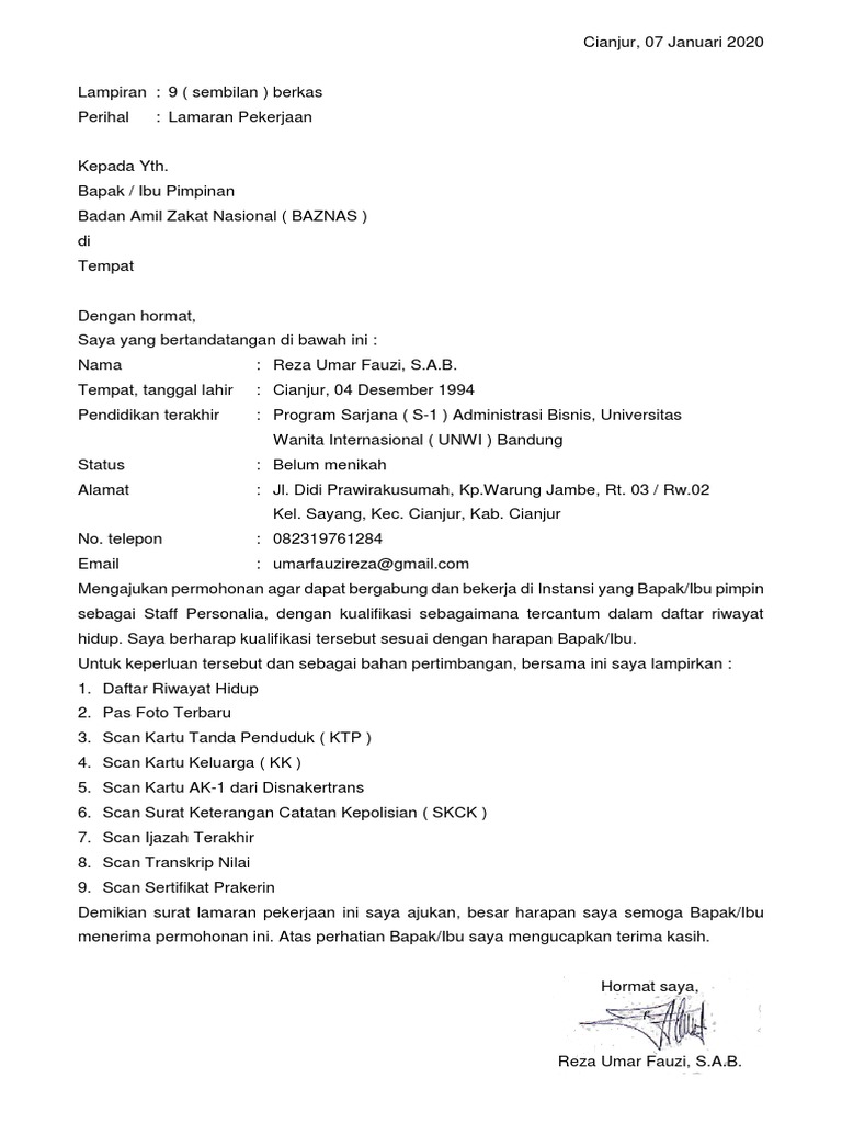 Surat Lamaran Pekerjaan Ke Baznas Pdf